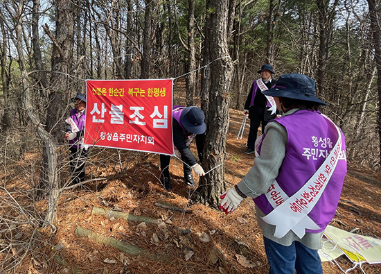 횡성읍주민자치회는 지난 27일 봄철 건조한 날씨로 인해 산불 발생 위험성이 높아짐에 따라 산수골 등산로 일원에서 방문객을 대상으로 산불 조심 캠페인을 진행했다.