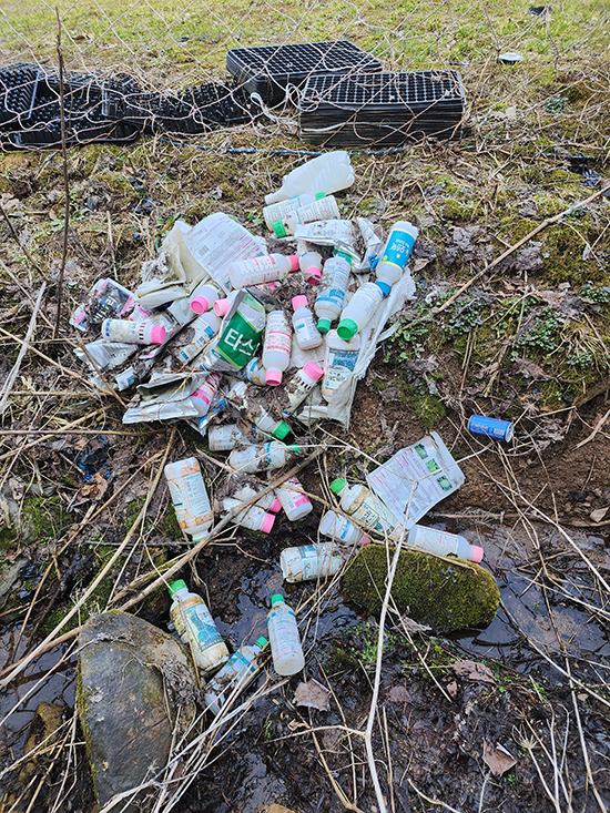 특히 계곡을 중심으로 각종 농약병 등이 쌓여 있어 계곡 오염까지 우려되는 실정이다. 이곳을 오가는 주민들은 “청정구역인 이곳에 각종 농약병 등 영농쓰레기가 쌓여 있어 불쾌감을 주고 있다”며 “빠른 조치가 필요하다”고 말했다. / 독자제보 |