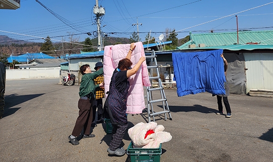 ‘온정 나눔세탁소’ 사업은 고령화 시대에 저소득 독거노인을 포함한 취약 가구들을 위해 대형 세탁물의 빨래를 지원하는 행사로 각 읍·면 지자체에 신청하면 횡성군자원봉사센터(센터장 한재수)를 통해 지원받을 수 있는 제도인데, 이번에는 마을 부녀회에서 직접 세탁물 수거부터 건조까지 자원봉사 하기로 했다.