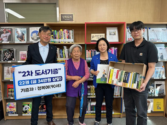 둔내면에 거주하는 정복여(90) 할머니가 지난 28일 둔내태성도서관을 방문해 도서 22권을 기증했다.