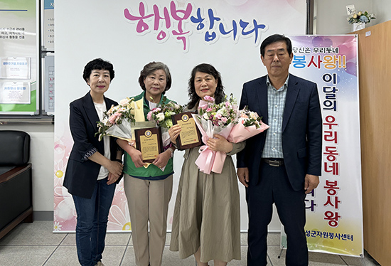 | 횡성군자원봉사센터(센터장 한재수)는 5월 ‘우리 동네 봉사왕(둔내면)’에 개인으로 김순자 봉사자를, 단체로는 둔내면 새마을부녀회(회장 박영자)를 선정했다.