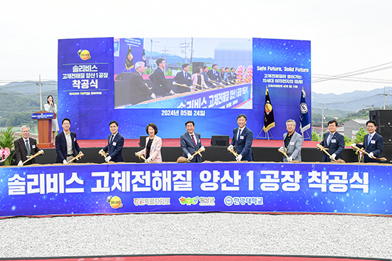 | 횡성군은 전고체배터리 고체전해질 분야 세계 최고 기술력을 보유한 ㈜솔리비스(대표 신동욱)가 지난 24일 우천 일반산업단지에서 최첨단 양산공장 착공식을 개최하고 본격적인 건립에 나선다고 밝혔다.