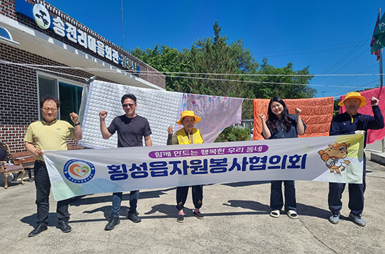 | 지난 3일 횡성읍 송전리(이장 이정호) 마을회관 앞에서는 자원봉사자들과 주민들이 모여 대형세탁물의 빨래가 어려운 독거노인을 포함한 혼자 생활하는 이웃을 위한 세탁 봉사를 진행했다.