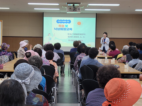 한편, 지난 11일 청일면 은빛대학 어르신을 대상으로 ‘폭염으로 인한 사고와 낙상 예방 교육’을, 13일엔 서원면 은빛대학에서 실시했고, 17일은 공근면 은빛대학, 20일에는 남촌노인대학을 찾아 교육을 진행한다. |