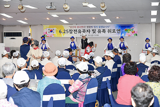 | 6·25전쟁의 날 제74주년을 맞아 6·25 참전유공자와 유족을 위한 위로연이 지난 21일 향교웨딩홀에서 열렸다.