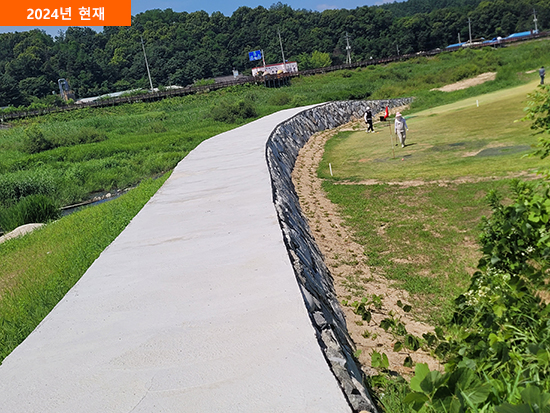 주민 A씨는 “아무리 공공이 이용하는 시설이라도 하천을 막아 물길을 돌리고 제방 위에다 건물을 짓고 다리 밑에다 화장실을 짓는다는 것은 이해하기 어렵다”며 “해마다 장마철에 비가 많이 오면 피해가 발생하는 지역에다 또다시 수억을 들여 공사를 했다는 것은 납득하기 어렵고 파크 골프장을 위해 하천을 가로막는 방호벽을 쌓았는데 물길이 반대편으로 몰려 피해가 나면 그 책임자는 처벌해야 한다”고 말했다.