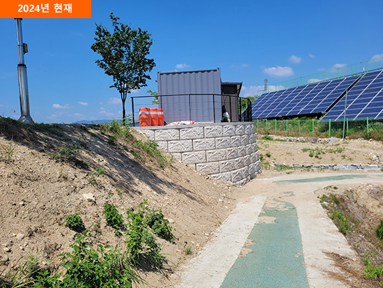 하천변 석축 쌓기와 제방둑에 사무실 설치 등 하천변 시설에 대해 군 교육체육과 관계자는 “2022년 장마 시 피해가 발생하여 일반적으로는 불가능한 공사지만 기관대 기관으로 건설과 하천팀과 협의를 해, 보 바로 밑에 수해 피해가 발생할 것으로 가정, 홍수 방호벽을 설치했다”고 밝혔다.