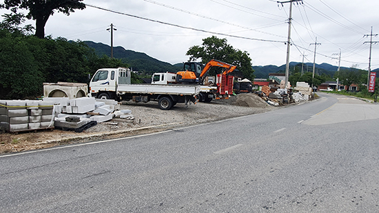 | 농지를 건설자재 야적장 등으로 사용하려면 적법한 절차를 거쳐 사용해야 하는데 마을 입구 대로변 농지를 아무런 허가 없이 불법으로 건축자재를 야적하고 각종 장비를 세워두고 있어 도로 미관과 마을 분위기를 해치고 있다.