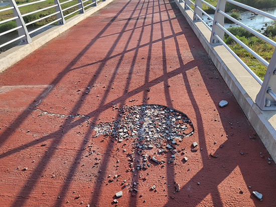 아침 운동을 나온 한 주민은 “개통한 지 3년밖에 되지 않은 다리가 이렇게 여러 군데 깨어지고 갈라진다는 것이 말이 되느냐?”며 “담당 공무원들은 이런 사실을 알고나 있는지 궁금하다”라고 분노를 표했다.