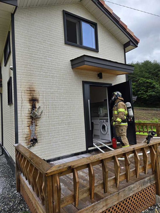 횡성소방서에 따르면 이날 오전 7시께 주택 단자함 쪽에서 불꽃과 연기를 목격한 주민 A씨는 119에 신고한 뒤 주택용 기초 소방시설로 보관 중이던 소화기를 활용해 진화했다는 것.