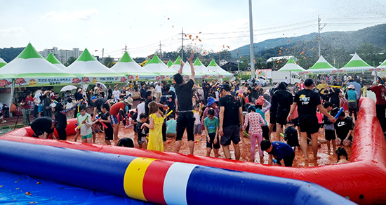 특설무대와 행사부스에서는 토마토 무게맞히기, 높이쌓기, 젓가락 나르기 등 토마토 골든벨과 물총놀이, 추억의 봉숭아 물들이기, 길거리 탁구 등 다채로운 이벤트가 펼쳐졌고, 특히 매일 2회씩 진행된 축제의 하이라이트 ‘대규모 토마토 풀장’에서는 금반지 4돈과 워터플래닛 무료이용권, 둔내 토마토, 농산물 선물세트 등의 푸짐한 경품이 제공돼 축제 분위기를 한껏 고조시켰다.