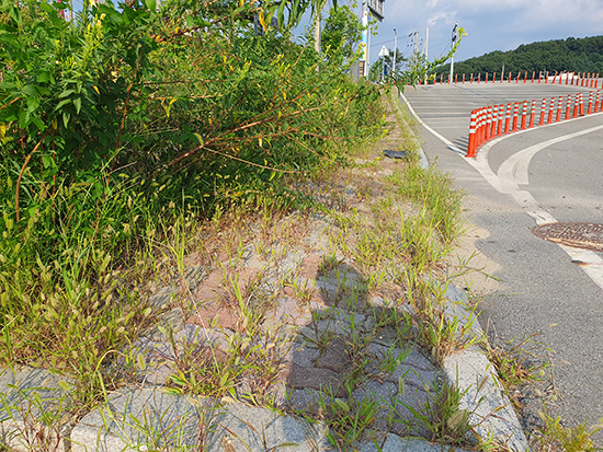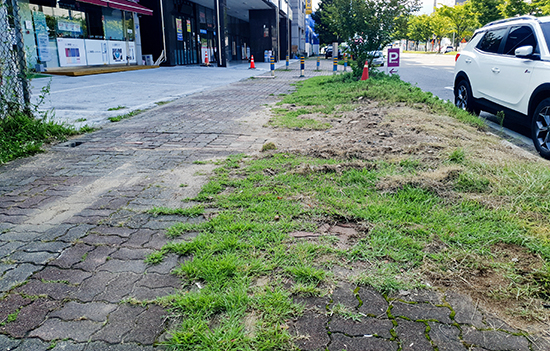 한편, 인적이 드문 도심 외곽의 인도는 사실상 풀밭으로 변해 도심 지역보다 심각한 곳이 많아 주기적인 관리가 필요해 보인다.