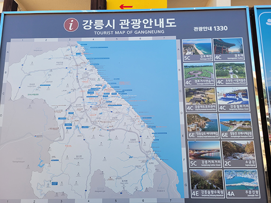 | ↑↑ 주문진과 수산시장 입구에 설치된 강릉시 관광안내도는 누구나 쉽게 볼 수가 있다. |