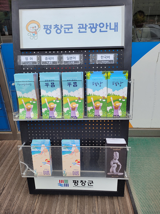 | ↑↑ 평창군은 관광객을 위한 중국어, 일어, 영어 등 각종 홍보물을 만들어 관광객이 접근하기 좋은 장소에 비치해 놓았다. |