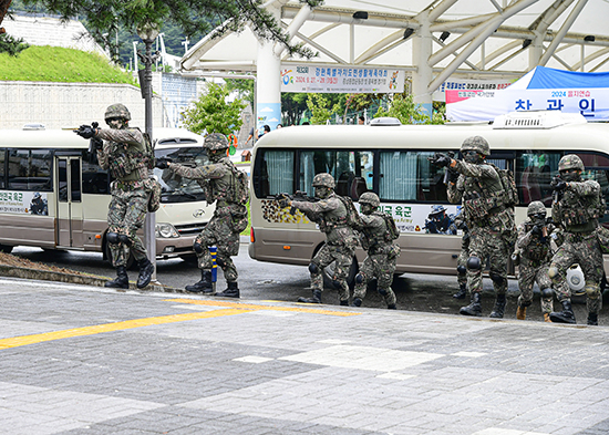 다중이용시설인 실내체육관에 폭발물 설치로 인한 피해 상황을 가정하고 신속한 초동 조치를 통해 실제 상황에 대응력을 높이는 한편, 동원된 인력과 장비로 수색 개시, 테러범 진압, 인명 구조 등 상황에 따른 긴밀한 협조 지원 체계를 구축해 임무를 수행했다.