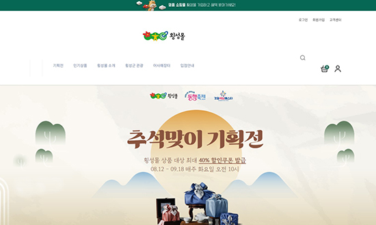 | 횡성군이 운영하는 공식 인터넷 쇼핑몰 ‘횡성몰’에서는 오는 9월 18일까지 추석맞이 특별 할인 기획전을 진행한다.