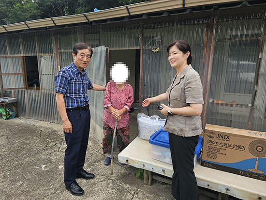 지난 23일 우천면에 사는 독거어르신 가구를 방문해 안부를 묻고 선풍기, 여름이불, 배게 등 생필품을 무더운 여름을 건강하게 보낼 수 있도록 전달했다.