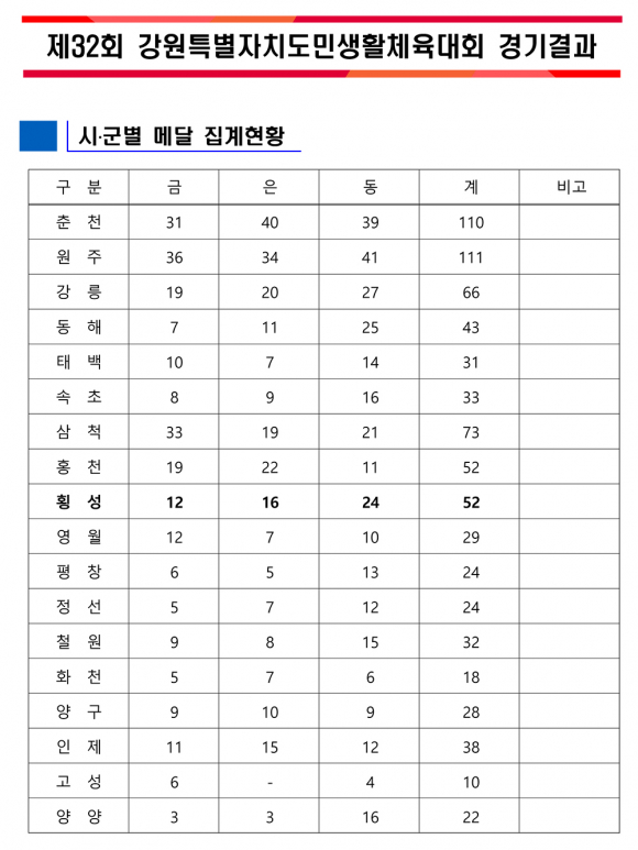 한편 2025년도 제33회 강원도민생활체육대회는 영월에서 개최된다.