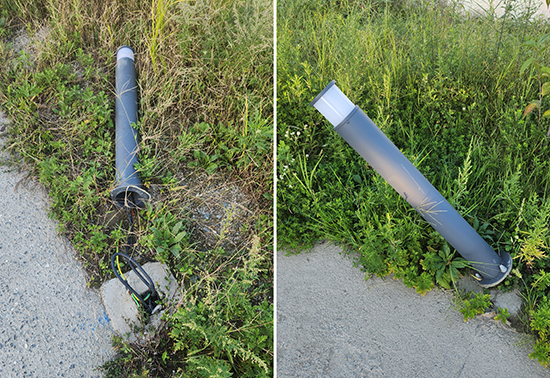 | 둔내면체육공원 뒤 강변에 농촌중심활성화 정책사업으로 야간에 보행하는 주민들의 안전과 차량사고 예방을 위해 설치한 보행등이 5개월째 고장난 채 방치되면서 주민들이 불편을 겪고 있다.