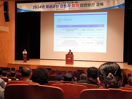 군은 이를 위해 지난 20일과 23일 횡성문화예술회관 대공연장에서 현업근로자 400명을 대상으로 2024년 3분기 정기 안전보건교육을 실시했다.