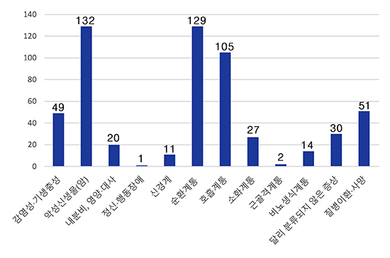 지난해 폐혈증에 의한 사망자는 32명으로 전년(14명) 보다 18명이 증가했고, 호흡기 결핵에 의한 사망자는 2명으로 전년(3명) 보다 1명이, 특정 감염성 및 기생충설 질환은 49명으로 전년(71명) 보다 22명이 감소한 것으로 분석됐다.