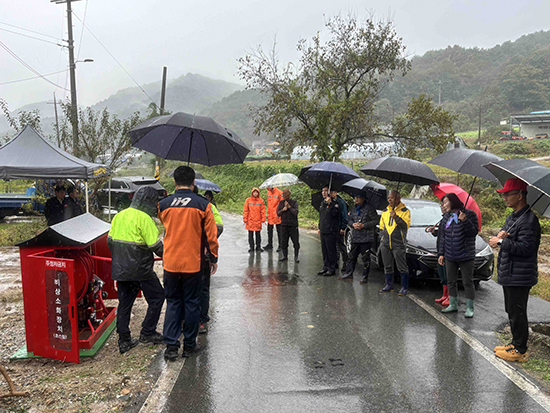 박순걸 서장 외 횡성소방서 직원들과 비상소화장치 설치업체 및 마을주민 10여 명이 참석한 가운데 비상소화장치의 기능과 사용법에 대해 교육하고 시연하는 시간을 가졌다. 갑천면장을 비롯한 마을 주민들은 직접 비상소화장치를 실습하며 사용방법을 익혔다.