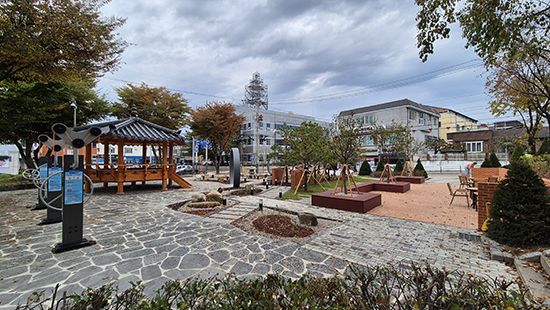 주변에는 돌단풍, 은사초 등 초화류 1,000여 본을 감상하며 산책할 수 있는 산책로를 조성해 운치를 살렸고 전통정자, 야외운동기구 등을 함께 배치했다.