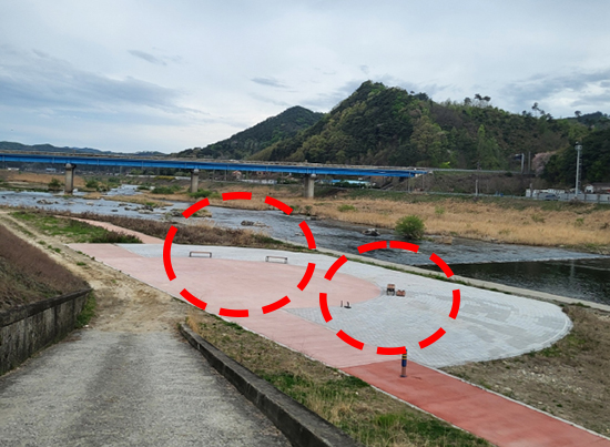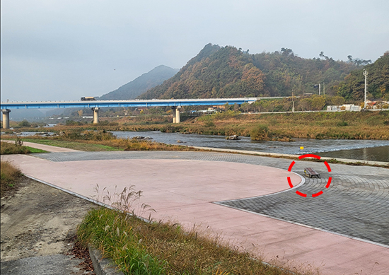 | 섬강 변 산책로 남쪽 공공하수처리시설 근처에 올해 초까지만 해도 네 개의 벤치가 설치되어 운동이나 나들이 나온 주민들에게 쉼터로 제공되고 있었다.