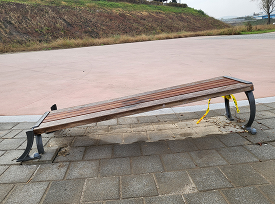지난 4월 이들 벤치 중 하나가 파손된 채로 방치되어 보행자들의 눈살을 찌푸리게 했는데(본지 4월 29일자 보도) 이후에도 6월과 8월경에 같은 장소 건너편 벤치 두 곳이 차례로 파손되어 복구되지 않은 상태로 남아 있어 주민들에게 불편을 끼쳐 왔다.