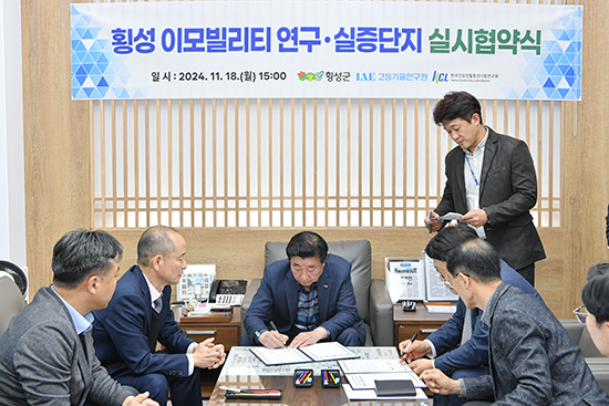 | 횡성군과 고등기술연구원(원장 김진균), 한국건설생활환경시험연구원(원장 천영길)은 지난 18일 오후 군청에서 모빌리티 연구·실증단지 조성 실시협약을 맺었다.