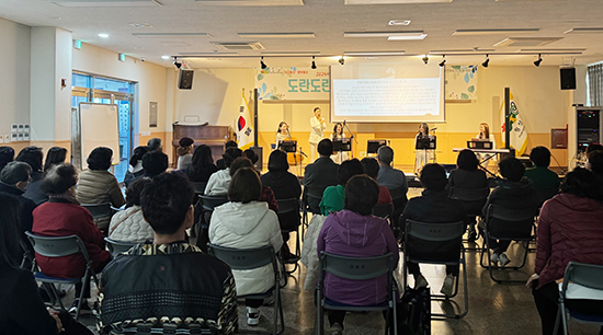 | 여성친화 특화사업의 일환으로 ‘찾아가는 도란도란 콘서트’가 지난 25일 오후 강림면 각림건강복지센터에서 열린 가운데 관현악 5중주 팝클래식 공연을 선보였다.
