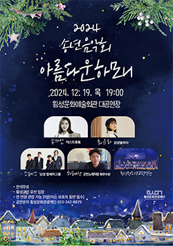 | ⓒ 횡성뉴스 | 횡성문화관광재단(대표이사 이재성)은 오는 19일 오후 7시 횡성문화예술회관 대공연장에서‘2024년 송년음악회, 아름다운 하모니’를 개최한다.