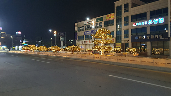 | 횡성군이 연말연시를 맞아 도로변 가로수 및 시가지 주요 교통섬에 연말연시 느낌의 야간 경관조명 설치로 주변환경과 조화로운 빛의 거리를 조성해 따뜻한 연말 분위기를 더하고 있다.