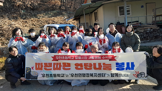 | 우천초등학교(교장 이종명) 학생자치회 5∼6학년 학생 16명과 교사 4명이 모여 지난 9일 지역 취약가구에 연탄을 직접 배달하고 나눔을 실천했다.