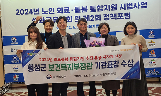 | 횡성군이 지난 6일 ‘2024년 노인 의료돌봄 통합지원 시범사업’에서 보건복지부장관 기관 표창을 수상했다.