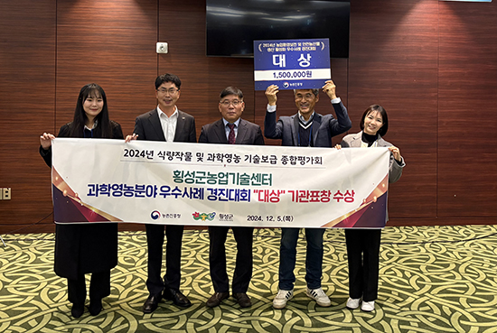 횡성군농업기술센터는 지난 10월 29일 농촌진흥청이 주관한 ‘2024년 농업환경보전 및 안전농산물 활성화 우수사례 경진대회’에서 농업환경 보전과 안전 농산물 기술 보급 확대에 기여한 공을 인정받아 대상 수상의 영예를 안았다.