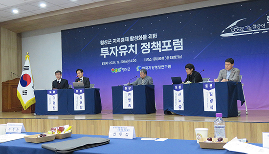 | 횡성군과 한국지방행정연구원 공동으로 지역경제 활성화를 위한 투자유치 정책 포럼이 지난 20일 횡성군청 대회의실에서 열렸다.