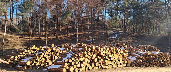 | 횡성군이 2024년 산불예방 숲가꾸기 사업을 통해 생산된 원목 약 1,712㎥를 1억 1,600만 원에 매각해 세외수입을 확보했다.
