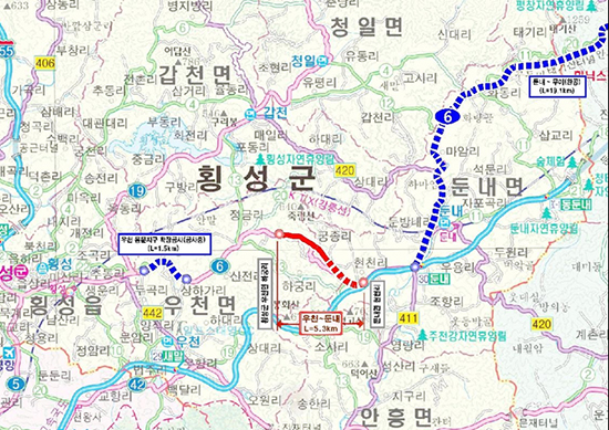 횡성호수길 방문객으로 이동이 많고 갓길, 보행로 부족으로 교통사고 위험이 큰 ‘갑천∼청일’구간도 도로 개량으로 원활한 교통 흐름을 확보할 수 있다.