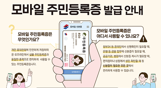 신청을 원하는 사람은 실물 플라스틱 주민등록증과 휴대전화를 소지하고 행정복지센터를 방문해 모바일 주민등록증 QR코드를 촬영하는 방법으로 신청 즉시 발급받을 수 있으며 비용은 무료다.