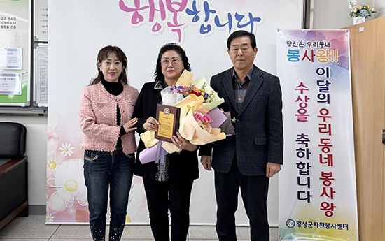 | 횡성군자원봉사센터(센터장 한재수)는 2월 우리동네봉사왕(횡성읍)에 개인으로 이수연, 단체로는 횡성농협 농가주부모임(회장 이순덕)을 선정해 지난 17일 횡성군자원봉사센터 사무실에서 ‘우리동네 봉사왕 시상식’을 가졌다.