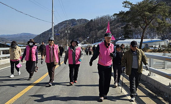 이날 행사에 한창수 도의원, 김은숙·박승남 군의원 등이 참석한 가운데 학담2리 마을회관에서 도곡리 경계 지역까지 약 6km를 걸으며 겨울 동안 제대로 활동하지 못한 몸 기지개를 펴며 걷기 행사를 진행했다.