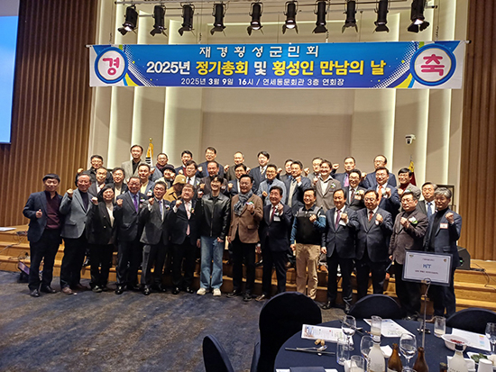 재경 횡성군민회(회장 한용희)는 지난 9일 오후 서울 연세대 동문회관에서 2025년 정기총회 및 횡성인 만남의 날 행사를 갖고 회원간 화합과 고향 발전 실천 등을 다짐했다.