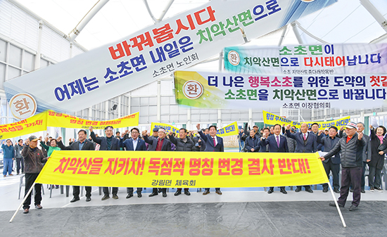 원주시 소초면 주민들 사이에서는 수년 전부터 대표 자원인 치악산을 통해 지역 브랜드 가치를 높아야 한다며 ‘치악산면’ 개칭 목소리가 나오기 시작했다.