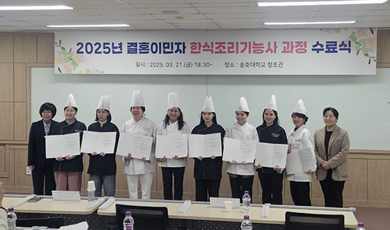 이번 과정은 약 2개월간 진행, 총 10명의 결혼이민자 참여했다. 한식조리기능사 자격증 취득을 위한 이론과 실습 중심의 17회 교육으로 총 51시간의 교육을 이수했다. 모든 교육생이 과정을 수료했다. |