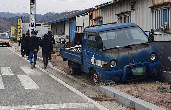 | ↑↑ 우천면 우항리 인도에 폐차 장기간 방치 |
