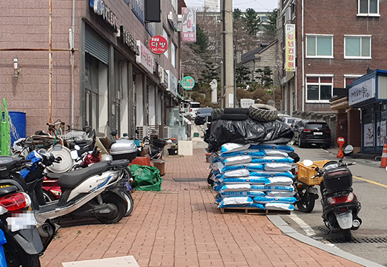 곳곳에는 인도를 가로막아 적치물을 쌓아 보행자 통행을 방해해도 방치하고 대로변 농지에는 불법으로 건설자재 야적장으로 1년여를 사용하고 있어도 적법한 조치도 하지 않는 등 요즘 행정이 엉망이라며 원성이 높다.