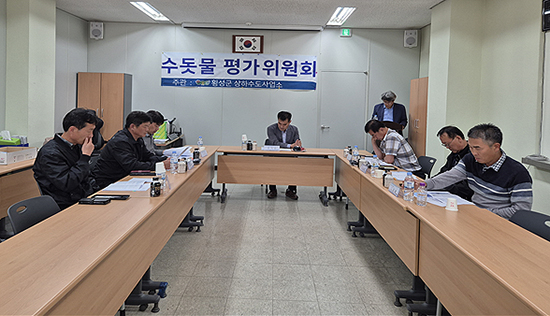 | 횡성군 상하수도사업소가 지난 14일 2025년 상반기 수돗물 평가위원회를 개최하고 수돗물 안전성과 품질 향상 방법을 논의했다.