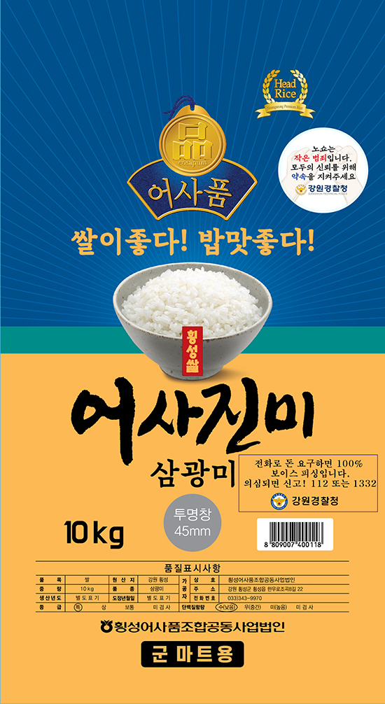 | ↑↑ ▲ 횡성특산품 어사진미(쌀) 포장지에 노쇼 예방 문구가 삽입되어 있다. |