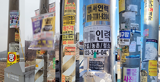| “전신주와 가로등, 교통표지 기둥마다 스티커 광고물로 도로미관을 해치고 있어요”